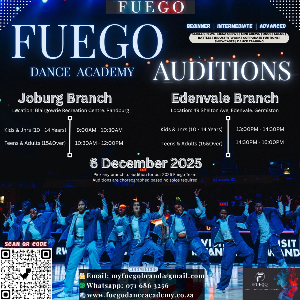 The Fuego Dance Academy is a home for dancers to be trained, conditioned and raised into excellence. We are a All Styles Dance Academy, catering for all ages and all levels of Dance.